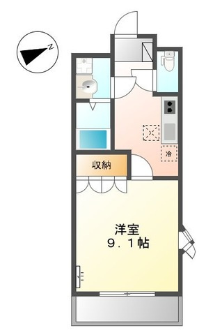 洋室 9.1帖/K 4.0帖 - 向き